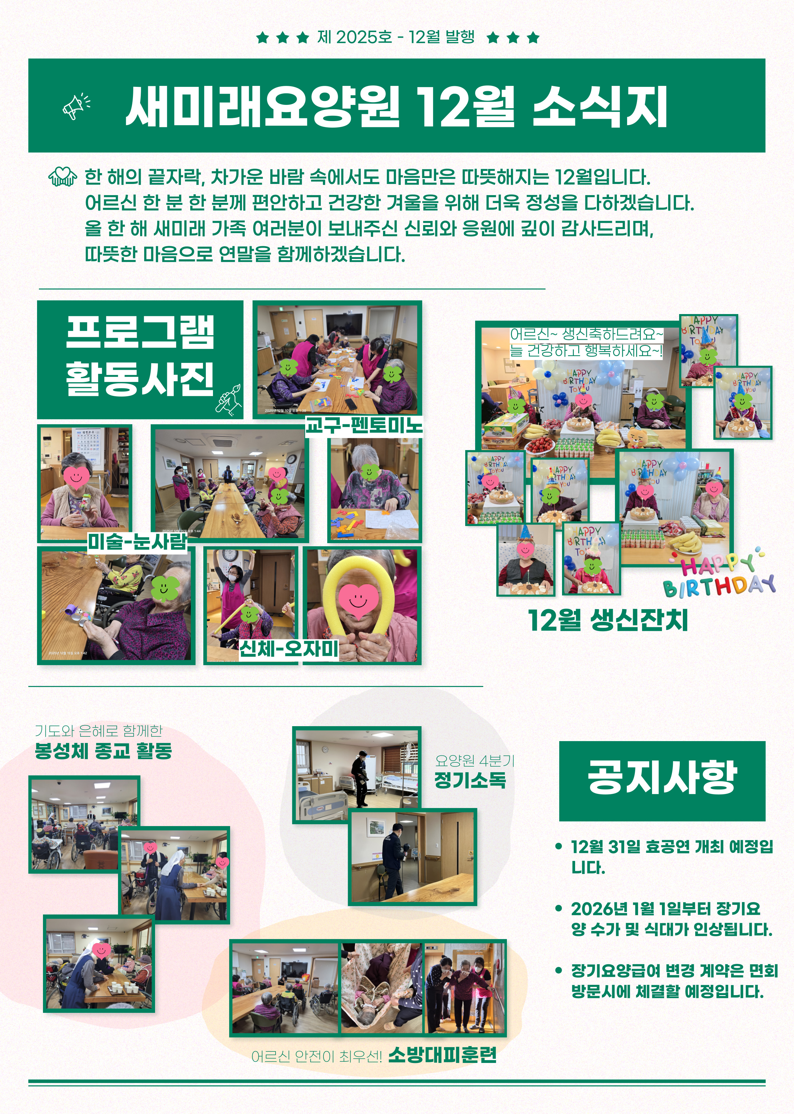 한 해의 끝자락, 가족과 같은 마음으로 어르신들의 평안과 웃음이 늘 함께하길 소망합니다.