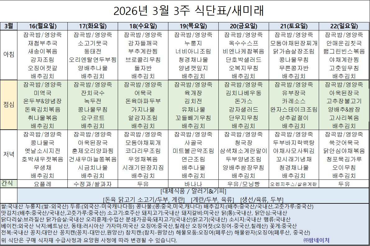 2026년 3월 3주 주간식단표